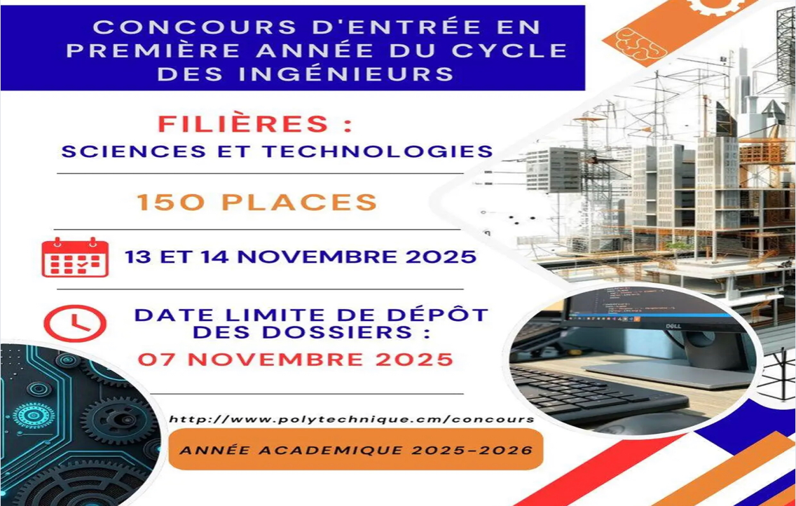 Les candidats ont jusqu’au 7 novembre 2025 pour déposer leurs dossiers. L’annonce suscite déjà un vif intérêt parmi les jeunes bacheliers et étudiants des filières scientifiques, qui y voient une opportunité d’accéder à une formation de haut niveau sans devoir se déplacer vers les grands pôles urbains comme Yaoundé ou Douala.Les informations relatives aux modalités d’inscription et au contenu des épreuves sont disponibles sur le site officiel : www.polytechnique.cm/concours.