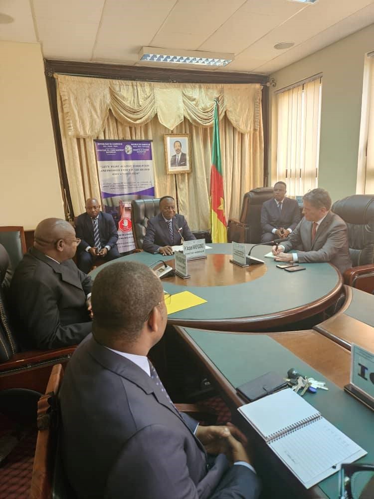 Le Ministre a souligné le rôle essentiel de la coopération franco-camerounaise dans le renforcement des capacités académiques, scientifiques et technologiques, citant notamment les appuis dans le développement des filières professionnalisantes et les échanges universitaires. Prenant la parole, l’ambassadeur Sylvain Riquier a exprimé sa satisfaction face à la diversité des partenariats existants entre les établissements d’enseignement supérieur français et camerounais. Il a réaffirmé la volonté de la France de poursuivre son accompagnement, en mettant un accent particulier sur l’innovation, la recherche appliquée et l’insertion professionnelle des jeunes diplômés. Cette rencontre a permis de réaffirmer les bases d’une coopération universitaire dynamique et mutuellement bénéfique, dans un contexte où les défis liés à l’éducation, à l’emploi et à l’innovation restent au cœur des priorités bilatérales.