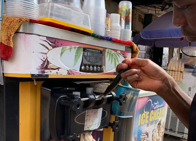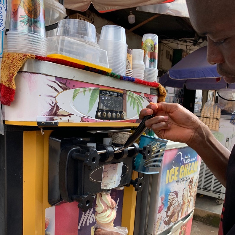 Bien que l’idée de se lancer dans le commerce de produits glacés puisse sembler éloignée de son parcours en informatique, Mohamadou a décidé de tenter sa chance. « Je n’avais rien à perdre, alors j’ai investi dans une machine à glaces et j’ai commencé à vendre ». Chaque jour, il réussit à réaliser un bénéfice net minimum de 3000 F CFA.