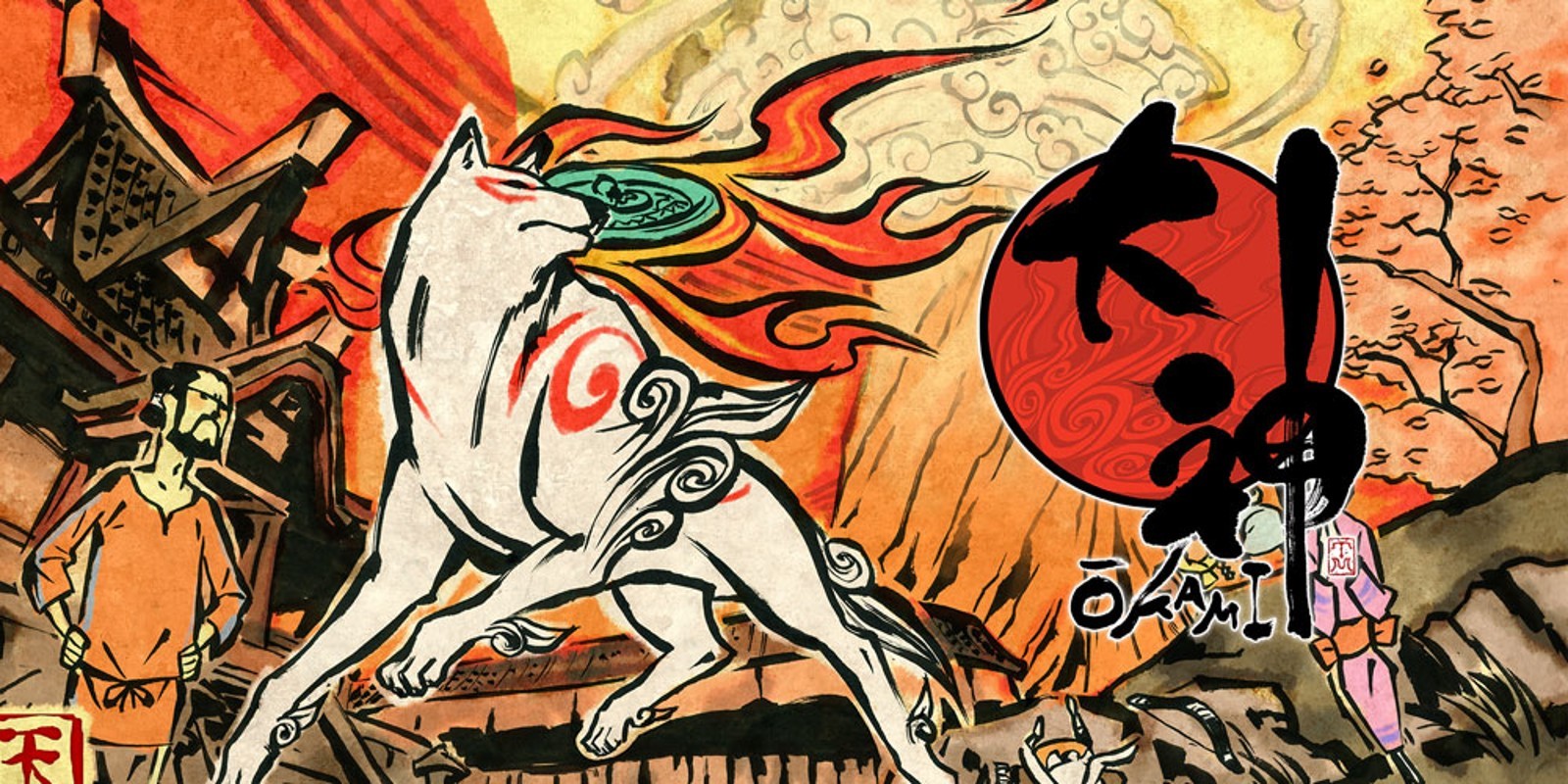 Le titre Ōkami, littéralement « grande déesse », peut aussi signifier « loup » lorsqu’il est écrit 狼. Ce double sens illustre parfaitement le jeu, dont l’héroïne, Amaterasu, déesse du Soleil et de la Lumière, se réincarne sous la forme du loup blanc Shiranui. Réveillée par Sakuya, déesse de la Flore, Amaterasu doit purifier un monde plongé dans les ténèbres après la résurrection du terrible dragon à huit têtes, Yamata-no-Orochi. Accompagnée du minuscule et bavard Issun, l’artiste errant, la déesse parcourt des paysages inspirés du folklore japonais, redonnant vie et couleurs à la nature grâce au pinceau céleste, un pouvoir divin qui permet de peindre sur le monde pour le transformer.